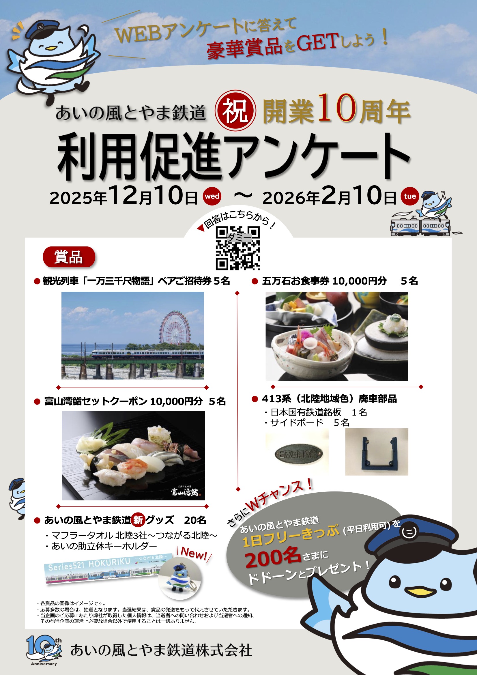 | (5) あいの風とやま鉄道新グッズ | 20名様 |