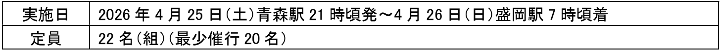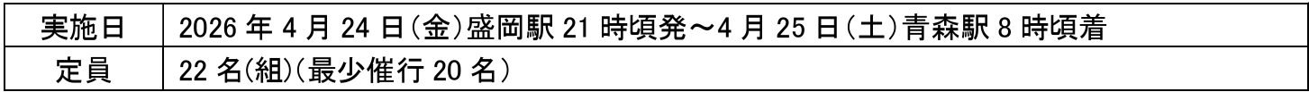 IGRいわて銀河鉄道では、「団体臨時夜行快速あさむし・ひめかみ」ツアーを実施します。