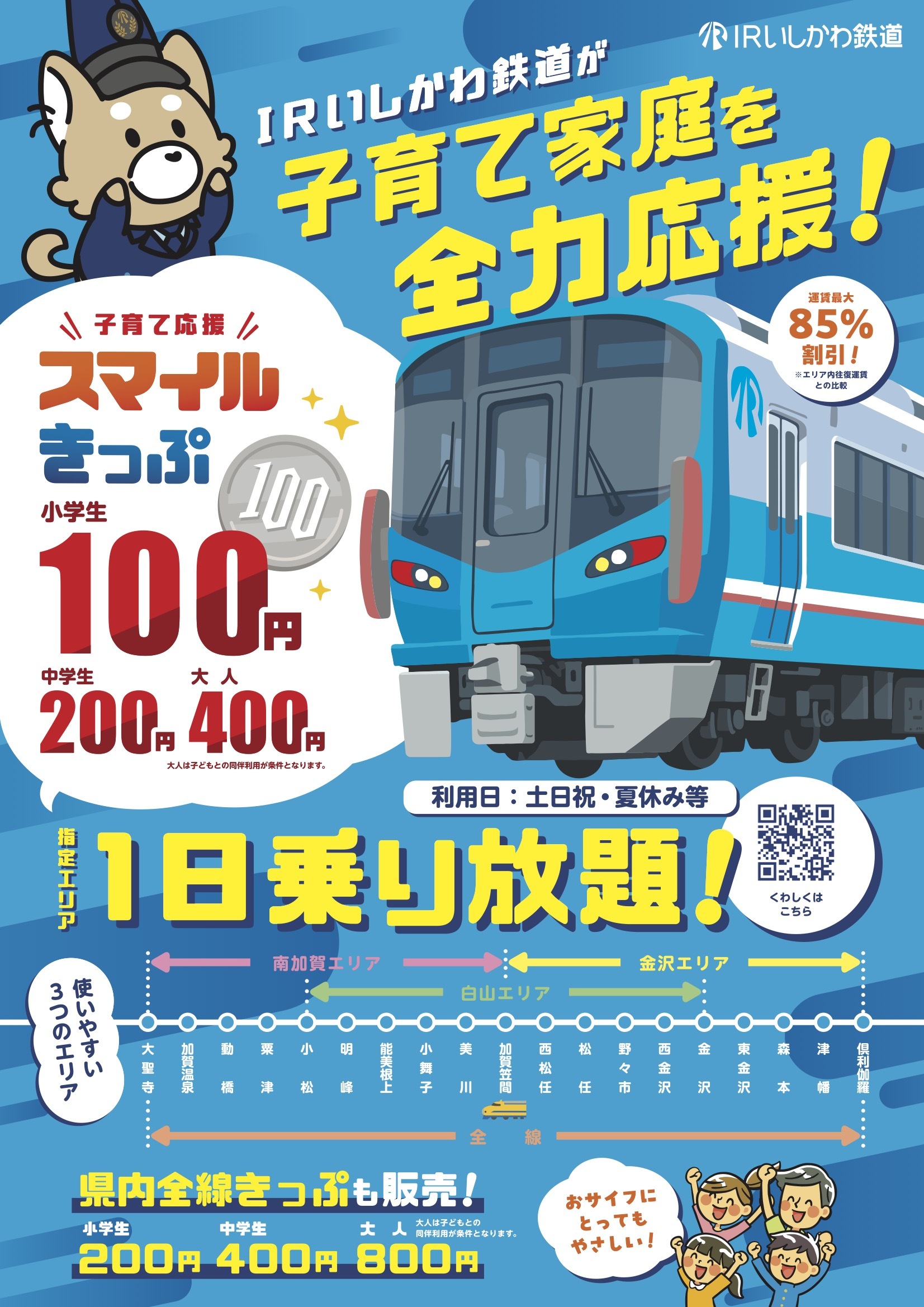 ○小学生100円乗り放題「子育て応援スマイルきっぷ」の発売